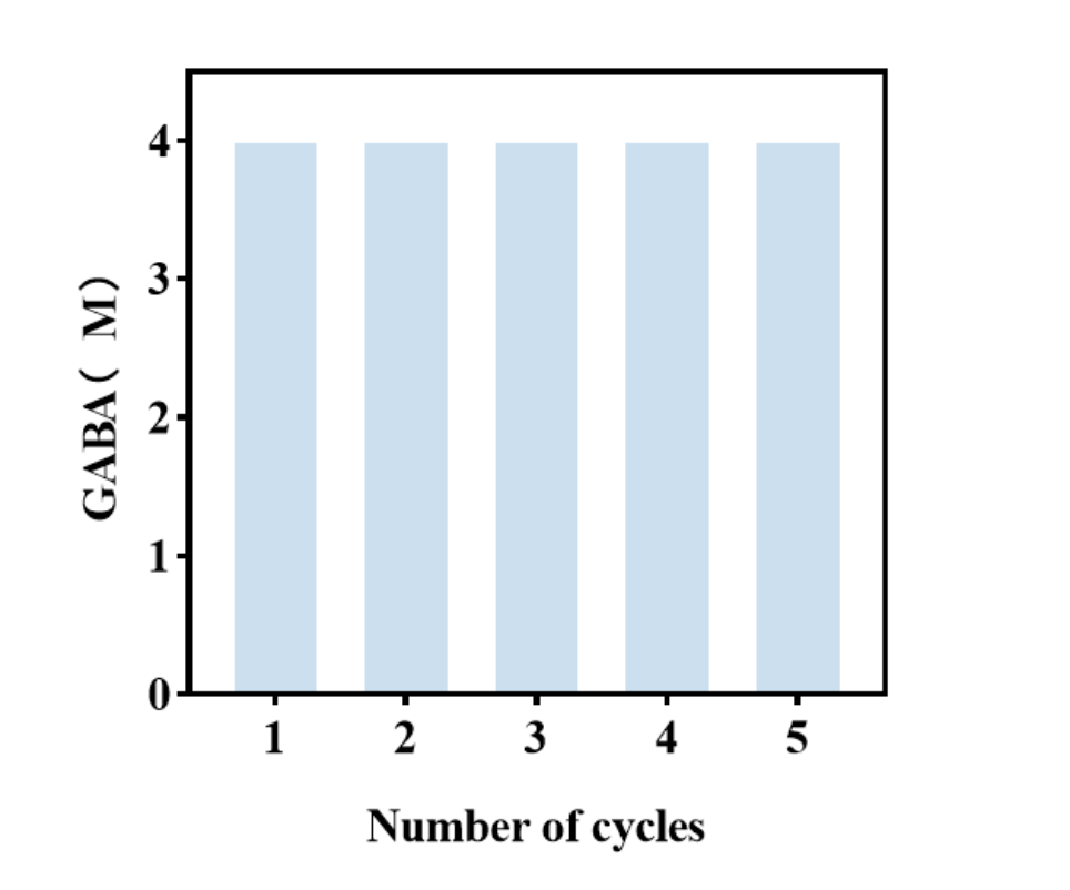 本团队利用基因挖掘、分子模拟技术改造酶分子和高通量筛选技术获得高性能酶分子,并已在大肠杆菌中实现高效表达。本技术利用微生物细胞作为催化剂,在溶剂为水的条件下利用自缓冲系统将底物转化生成 γ-氨基丁酸,不需要进行纯酶的制备,同时细胞容易与产物分离并回收,可实现催化剂的重复使用。此外,由于细胞的存在,酶在细胞中更加稳定,生产效率更高,且转化体系成分简单更有利于下游纯化γ-氨基丁酸。根据目前研究进展,利用大肠杆菌全细胞催化L-谷氨酸,最高产量为以3 M的L-谷氨酸为底物,重复使用三个循环生产γ-氨基丁酸,总产量达到829.08 g/L。