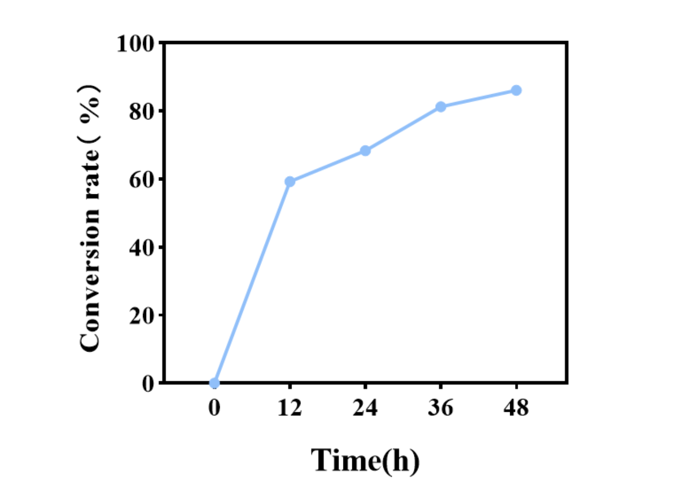 黄酮类化合物具有极高抗氧化活性,还具有抗肿瘤、消炎、抗病毒、抗衰老等多种生物活性,但植物提取法与化学合成法均具有效率低、污染环境等缺点,本团队建立一个α-鼠李糖苷酶的数据库和申请获得一个软件著作权,在毕赤酵母异源表达10余个工程菌,开发了二氢槲皮素的酶法合成,在底物浓度为2.064 g/L的条件下可得到1.156 g/L的二氢槲皮素,实现了二氢槲皮素的高转化率;以及芦丁的高效酶法转化,在芦丁的底物浓度为250 g/L的条件下可得到转化率>95%。