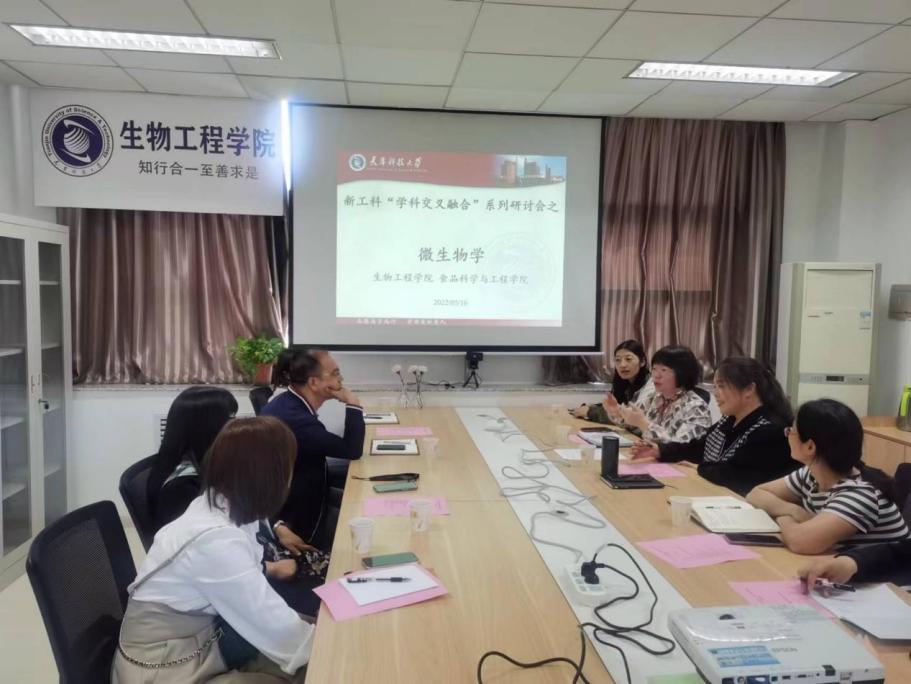 生物工程学院与食品科学与工程学院于2022年5月16日10:30-11:30在2号楼302会议室召开新工科“学科交叉融合”系列教学改革研讨会之微生物学。生物工程学院教学副院长滕玉鸥,生物工程学院本科教务科长徐雪天,教学秘书袁媛,微生物课程负责人李玉、毛淑红,微生物学任课教师王凤华、秦慧民,食品学院食品营养与健康系主任王志伟,食品学院本科教务科长白璐,食品微生物检测技术课程负责人侯丽华,食品微生物检测技术任课教师孟梦参加研讨会。会议由生物工程学院副院长滕玉鸥主持。