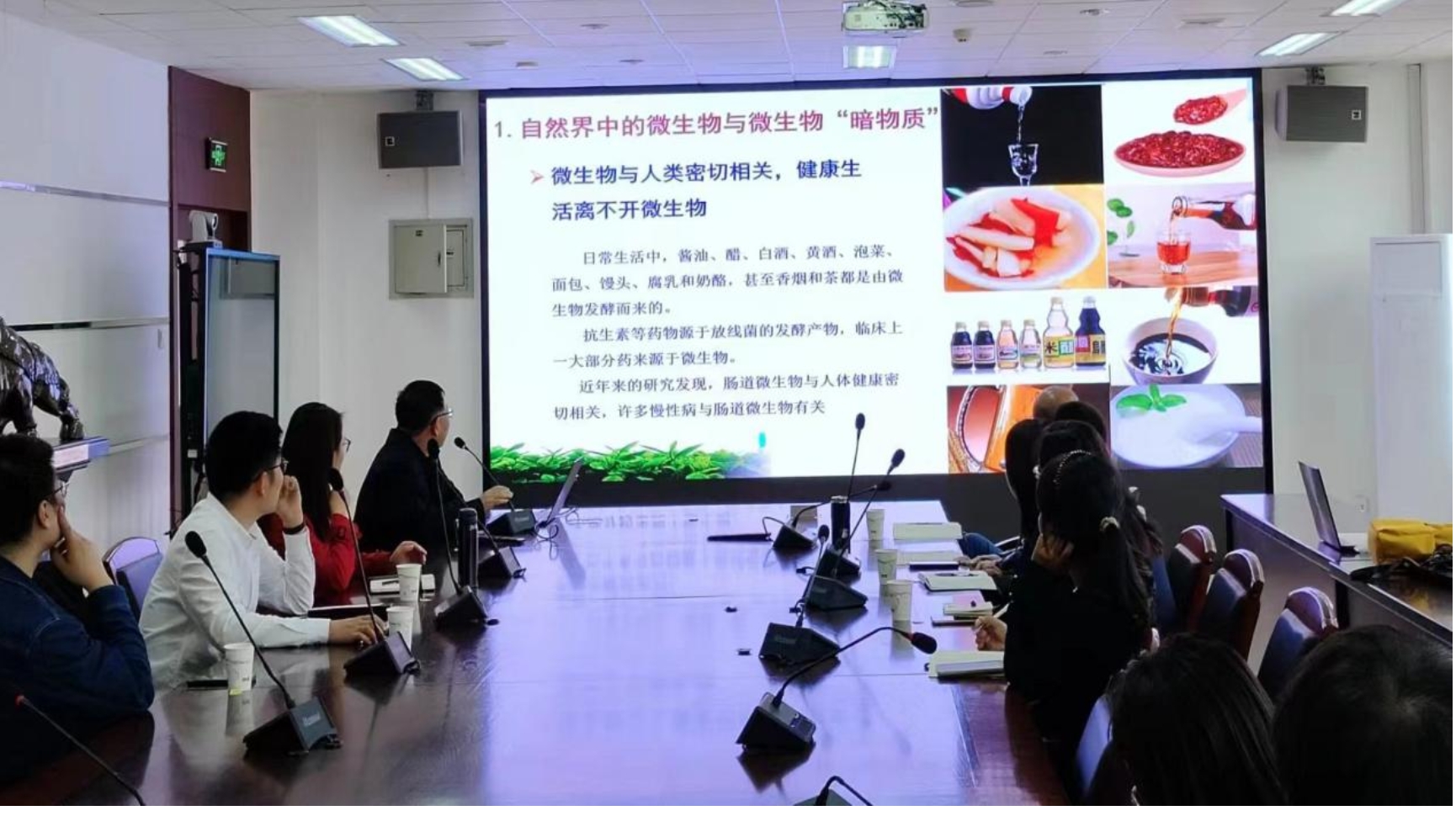 报告结束后,与会师生与任教授就培养组学、微生物食品安全属性、厌氧菌的筛选等问题进行深入讨论。双方就酿造微生物菌种资源分享、功能菌剂研发等方面达成了初步合作意向。会议最后,张翠英副院长及同学们再次对任清教授的报告表示了由衷的感谢。本次报告在一片掌声中圆满落幕。