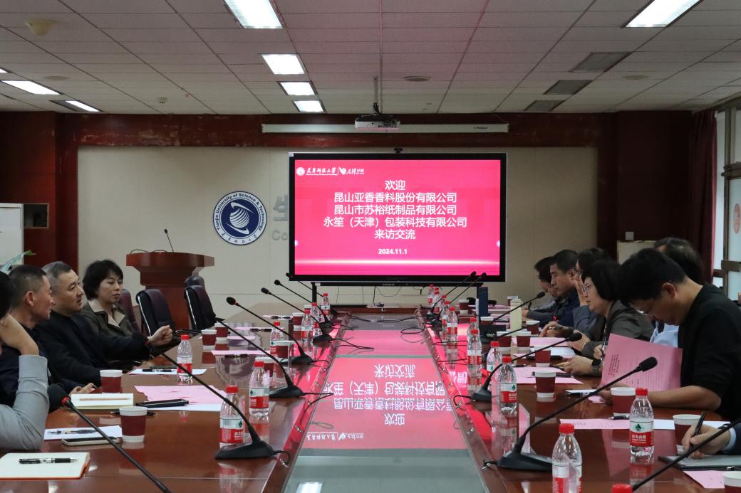 11月1日,昆山亚香香料股份有限公司董事长周军学、昆山市苏裕纸制品有限公司董事长王建锋、永笙(天津)包装科技有限公司总经理李宁等一行来访我校进行交流座谈。校党委常委、副校长王敏,生物工程学院、食品科学与工程学院、轻工科学与工程学院相关负责同志及部分教师代表参会。会议由生物工程学院副院长张翠英主持。