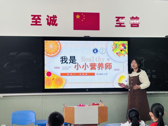 本次活动中,生物工程学院课后服务志愿者吴逸晨结合专业知识,以生动有趣的方式通过色彩鲜艳的图片和简单易懂的语言,向小朋友们详细讲解了食物营养的基本知识,以及如何通过均衡饮食来维持身体健康,同时通过形象的膳食宝塔模型,向小朋友们展示了每天应该摄入的各类食物比例,帮助他们理解“吃得好”不仅仅是吃饱,更是吃得科学、吃得健康。同时开展“光盘行动”倡议,用实际例子告诉孩子们,粮食的来之不易以及浪费食物的严重后果,鼓励小朋友们从自身做起,珍惜每一粒粮食,养成节约的好习惯,并带动身边的人一起践行“光盘行动”,为减少食物浪费贡献自己的力量。