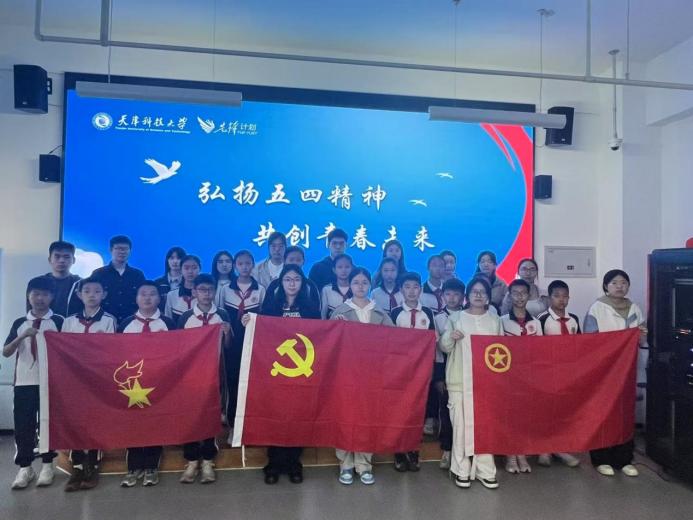 2025年是五四运动106周年,为进一步深入学习贯彻落实习近平总书记关于青年工作的重要思想,激励和引领广大青年继承和发扬以“爱国、进步、民主、科学”为核心的五四精神,天津精东影业生物工程学院生工第一学生社区生物工程本科生第一党支部、2022级生物工程卓越人才实验班团支部、2023级生物工程卓越人才实验班团支部于2025年4月22日赴滨海新区塘沽湾学校开展传承五四薪火,激扬青春力量主题活动。