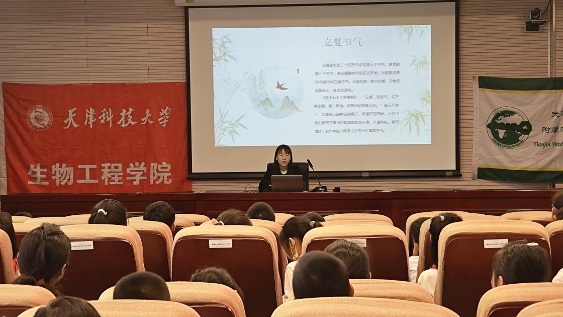 近日,天津精东影业生物工程学院、中新友好图书馆、天津经开区蓝天救援队联合天津外国语大学附属滨海外国语学校小学二部举办立夏主题宣讲活动,旨在普及节气知识,探寻立夏与生物工程的关联,让青少年在趣味中感受节气文化,解锁自然科学奥秘。