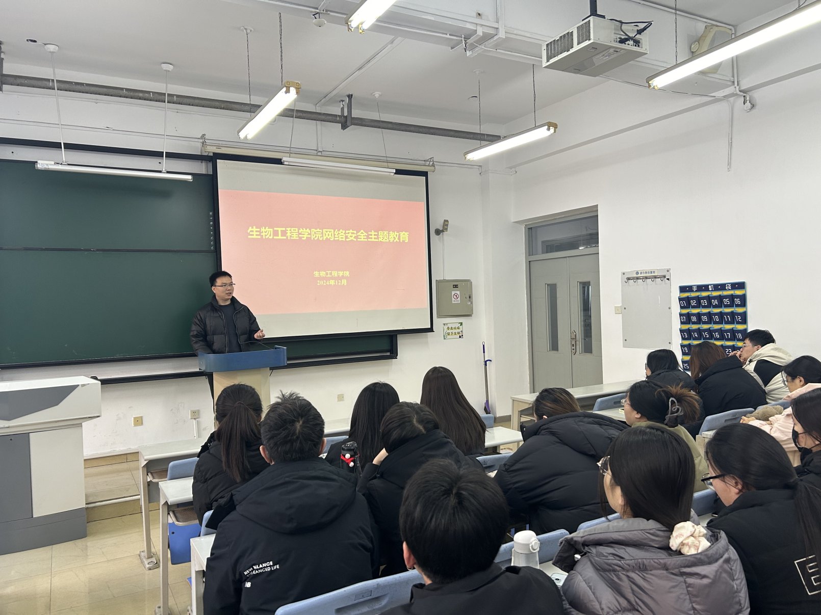 12月13日上午,生物工程学院邀请学校网络安全和信息化办公室陈磊老师开展网络安全主题讲座,学院党委副书记李红亮、学院师生代表参加讲座。