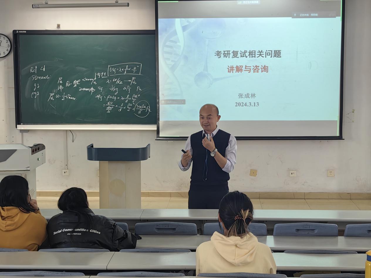 为进一步帮助生物工程学院考研学子们掌握2024年硕士研究生入学复试和调剂的相关政策及备考策略,2024年3月13日中午,生物工程学院举办考研复试与调剂指导会,主讲嘉宾为生物工程学院张成林教授。指导会采取线上线下相结合的方式进行,由本科生2020级辅导员老师周丽媛主持,2020级参加研究生考试的同学参会。