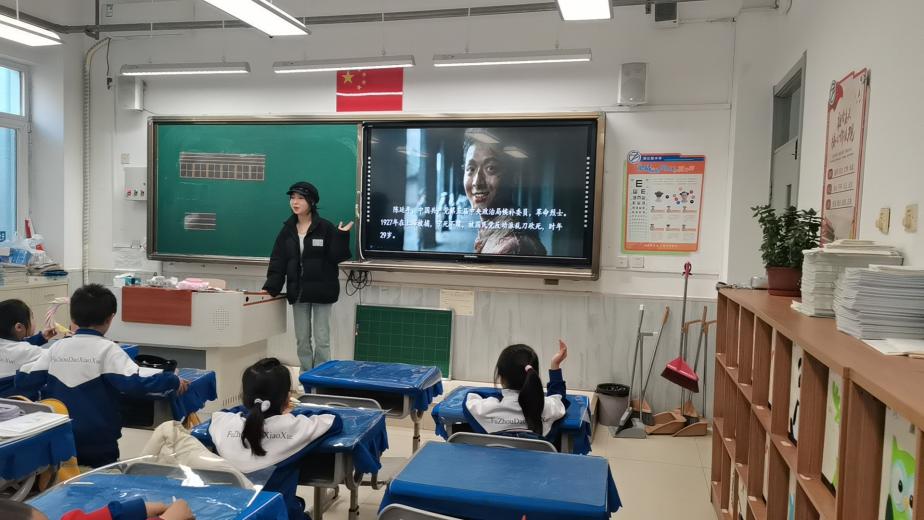 本次活动,生物工程学院课后服务志愿者2023级本科生姚瑶带领同学们体验了一段革命之旅,革命者——陈延年的故事映入大家眼帘。志愿者姚瑶向同学们讲述了革命者陈延年的早期生活,早期职业以及最后的被捕入狱,结束了他的一生……小朋友们听的津津有味,此时,陈延年已经走进同学们的心中。