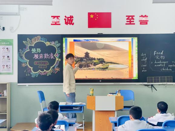 本次活动中,生物工程学院课后服务志愿者2022级本科生张卓然、刘恩泽从沙漠中生存的生物开始介绍,先后介绍了沙漠环境、沙漠动物的生活方式、沙漠植物的生长方式,倡导同学们保护环境,保护自然界中的动物和植物。另外,志愿者还介绍了“基因”、“性状”、“遗传”等生物学科专有名词,让小学生们对生物学知识有初步的了解。