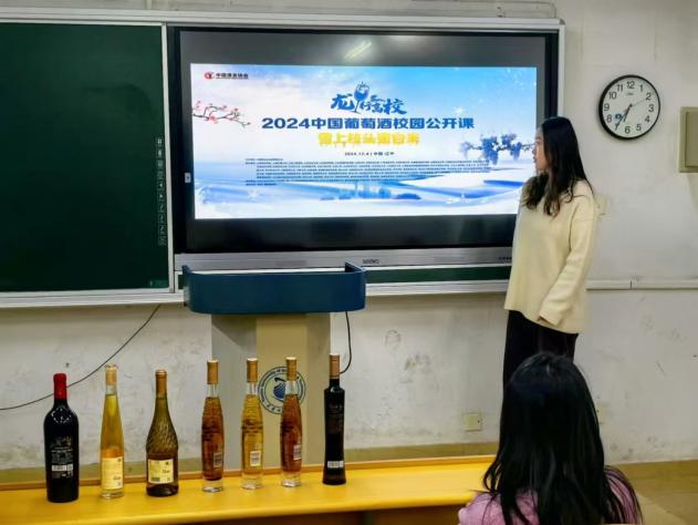12月4日,中国酒业协会葡萄酒分会主办“龙行高校”2024年中国葡萄酒校园公开课在线上线下同步开讲。我校作为众多承办单位之一,组织学院师生在滨海校区5-302教室参与了本次以“雪上枝头蜜自来”为主题的公开课活动。