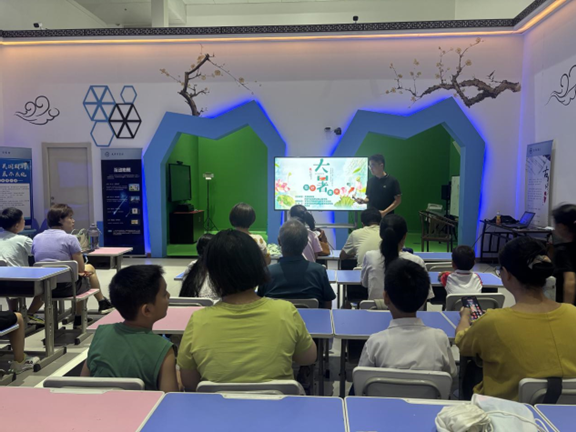 本次活动特邀天津精东影业生物工程学院研究生、蓝天救援队志愿者苑成武担任主讲人。在他的引导下,孩子们走进“大暑”节气的神秘世界,从天文地理到自然生态,从传统民俗到科学防暑,知识的种子在孩子们心中悄然播撒。