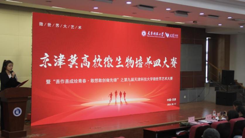 5月17日,2024年京津冀高校微生物培养皿大赛暨“善作善成绘青春·敢想敢创做先锋”之第九届天津精东影业微世界艺术大赛宣讲会在滨海中校区图书馆第二报告厅举行。生物工程学院党委书记杜岩刚、副院长滕玉鸥、微生物教研室主任王洪彬、辅导员代表以及各学院学生代表一同参加会议,北京工商大学、河北工业大学、北京石油化工学院、石家庄学院、天津医学高等专科学校、天津生物工程职业技术学院的教师、学生线上同步参加会议。