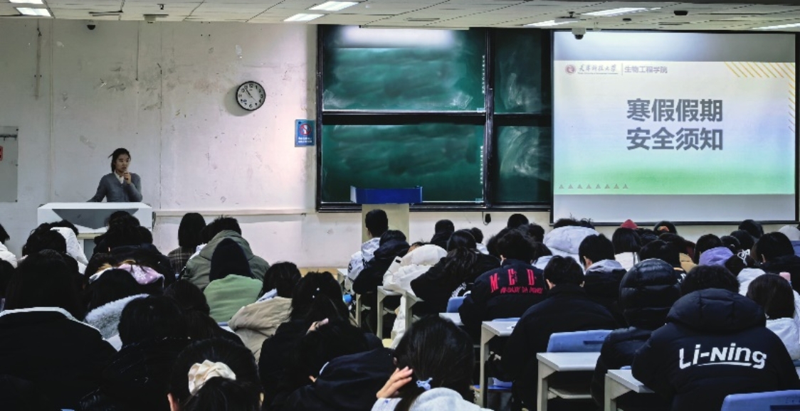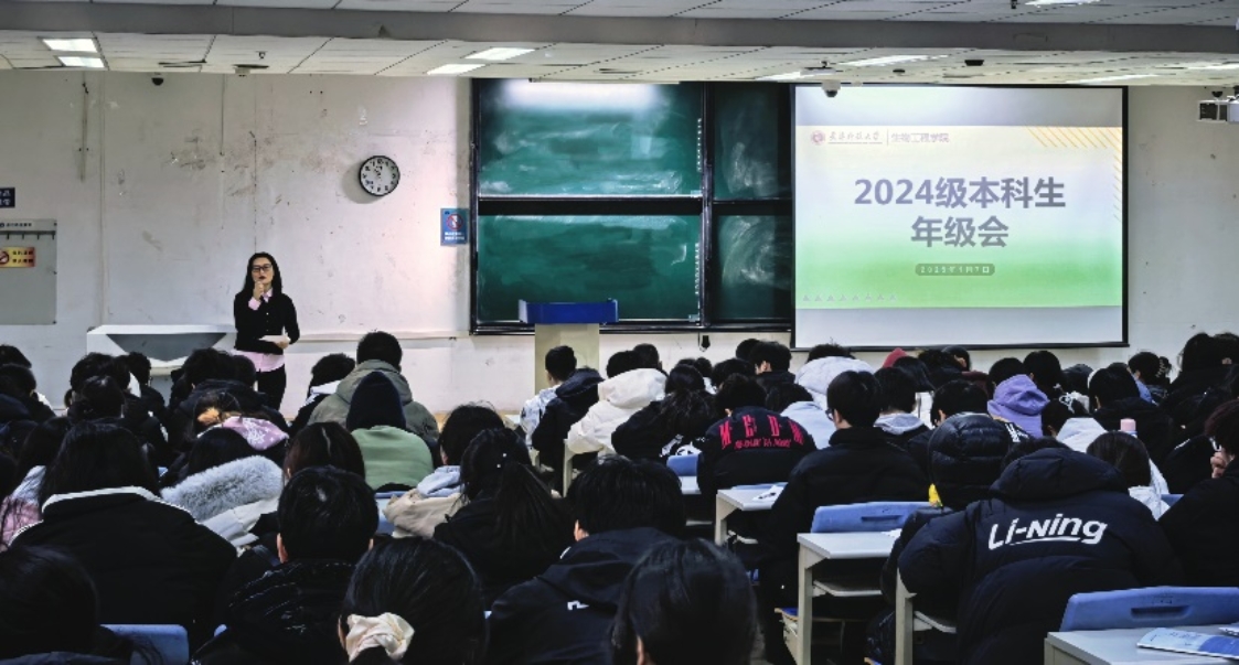 2025年1月7日,生物工程学院2024级本科生在滨海校区图书馆第三阶梯教室举办“筑安全基石,逐成长梦想”年级大会,2024级全体本科生参加,辅导员任艳萍和吕彦楠主持。