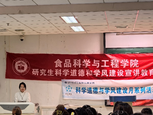 为进一步在学院内弘扬创新精神,助力研究生成长与全面发展,提升研究生科研素养,推动“2024年研究生科学道德和学风建设宣讲教育月”活动的深入开展。近日,生物工程学院与食品科学与工程学院联合举办了本次宣讲会,邀请了中国国际大学生创新大赛(2024)天津赛区高校主赛道银奖获得者栗新尧,开展了一场以“竞赛经历与心得分享”为主题的宣讲活动。