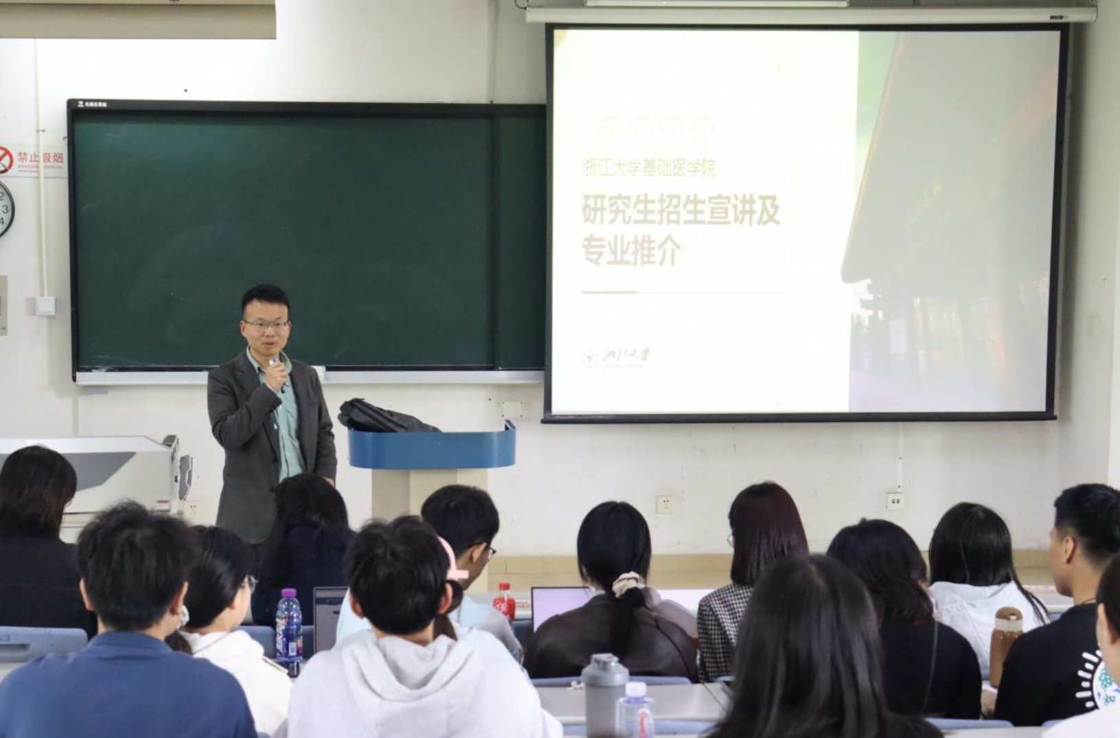 4月27日14:00,生物工程学院于滨海中校区3-211教室召开浙江大学基础医学院研究生招生宣讲会,会议由浙江大学基础医学院毛旭明教授主讲,2020级本科生辅导员周丽媛老师主持。
