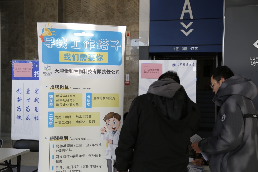 本次招聘会汇聚了天津怡和生物科技有限责任公司、天津偶联生物医药技术有限公司、牧原实验室等34家企业,覆盖了生物与医药、海洋科学、食品营养、化工与材料、轻工技术、教育等多个行业领域,提供了近360个就业岗位。