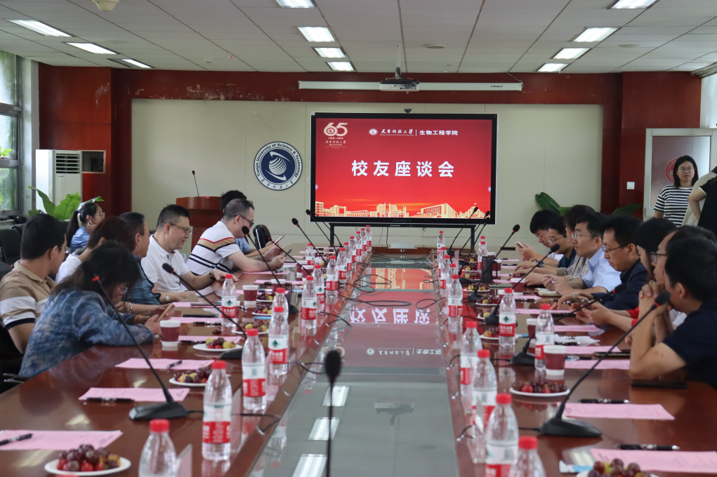值天津精东影业65周年校庆之际,生物工程学院组织开展“非凡校庆日”系列活动。9月23日上午,生物工程学院在河西与滨海两校区组织开展校友返校座谈会、纪念品赠送、签名一系列活动,生物工程学院党政领导班子、校友代表,生物工程学院教师代表、学生代表参加活动。